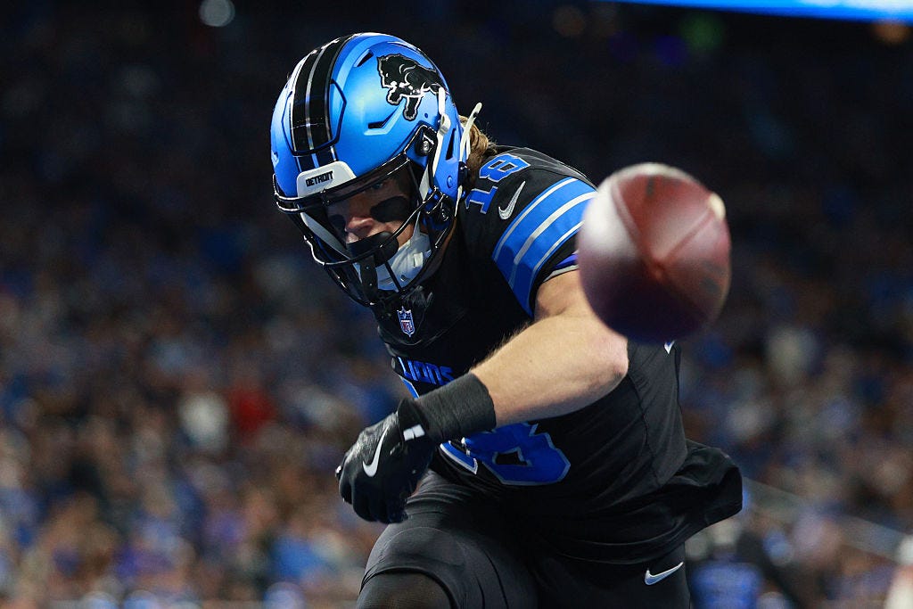 After thinking about it a little bit more after last Sunday’s loss, if there’s one player who needs to step up more than others on the offense, it’s rookie Isaac TeSlaa. After a relatively quiet start to his career — sans a couple of incredible one-handed catches early in the season — there’s an opportunity to step up in a number of offensive facets, including third down, in the red zone, and as a run blocker.