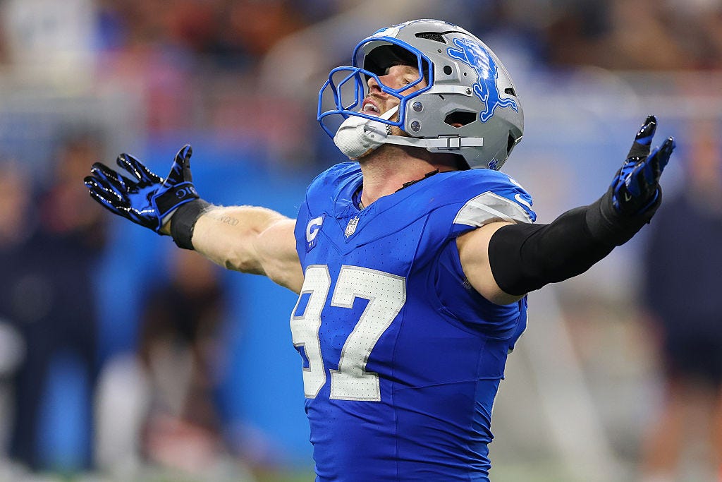 The No. 2 pick in the 2022 draft, Hutchinson took little time to get acclimated to the NFL, racking up 9.5 sacks as a rookie. He’s steadily improved in the years since, tallying 11.5 sacks in his second season. And he had a league-leading 7.5 through five games a year ago, before a broken leg abruptly ended his push for Defensive Player of the Year.