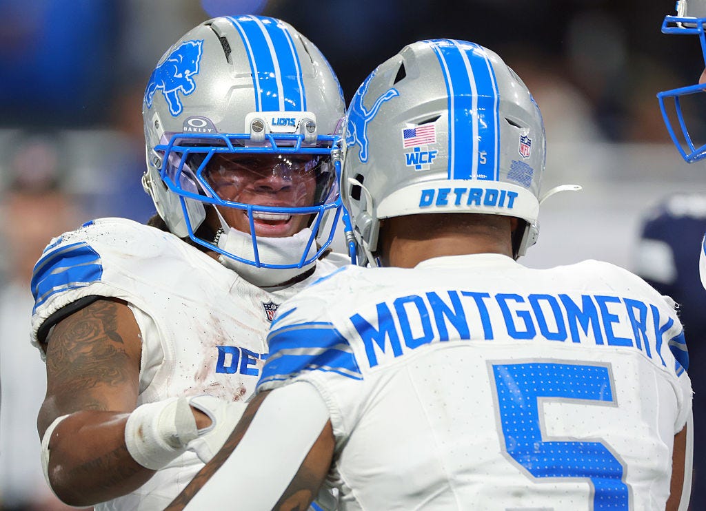 Individually, the success rate of both backs dipped. After each finished top 10 the previous season, Gibbs dropped from 53.6% to 48.1%, while Montgomery went from 55.1% to matching Gibbs’ 48.1% rate in 2025.