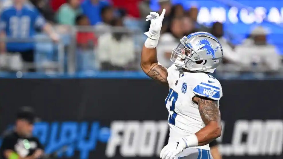 Cornerback Terrion Arnold (pec), running back Jahmyr Gibbs (hamstring), tight end Sam LaPorta (hamstring) and linebacker Malcolm Rodriguez remained out after the weekend. Joining those four on the sidelines were offensive tackles Giovanni Manu and Dan Skipper (ankle) and safety Ifeatu Melifonwu.