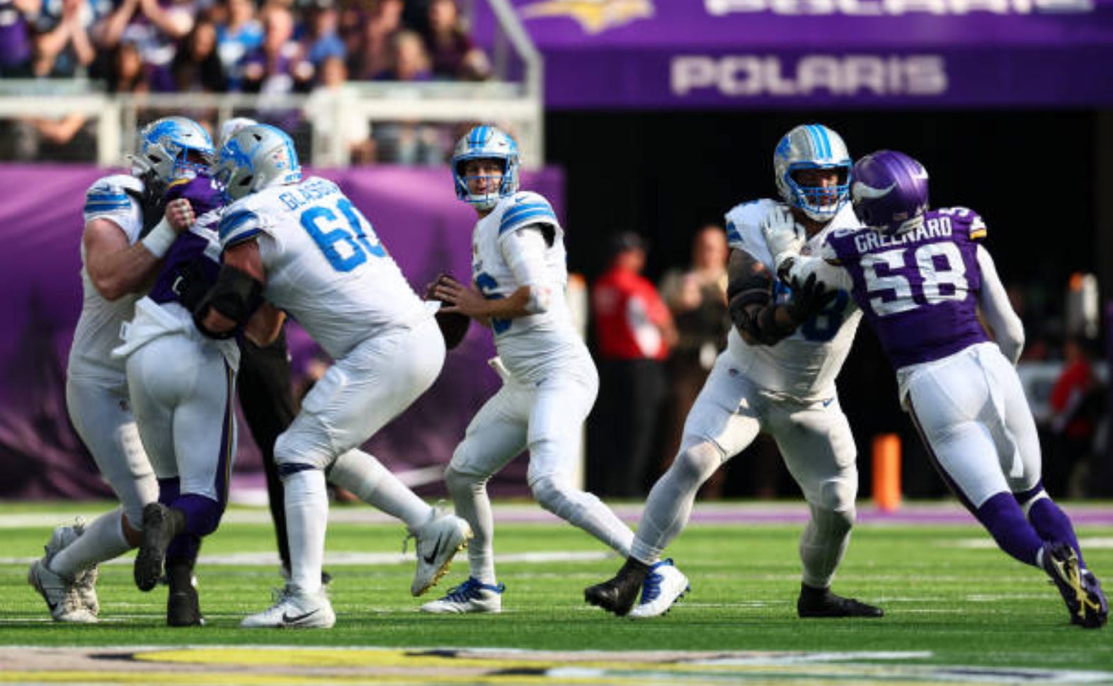 The Vikings sent the house, seven total rushers, which the protection adequately picked up. But it was Goff who was central to the play’s success, looking off middle-field safety Camryn Bynum by staring down Jameson Williams immediately after the snap, which cleared the seam route for St. Brown out of the right slot.