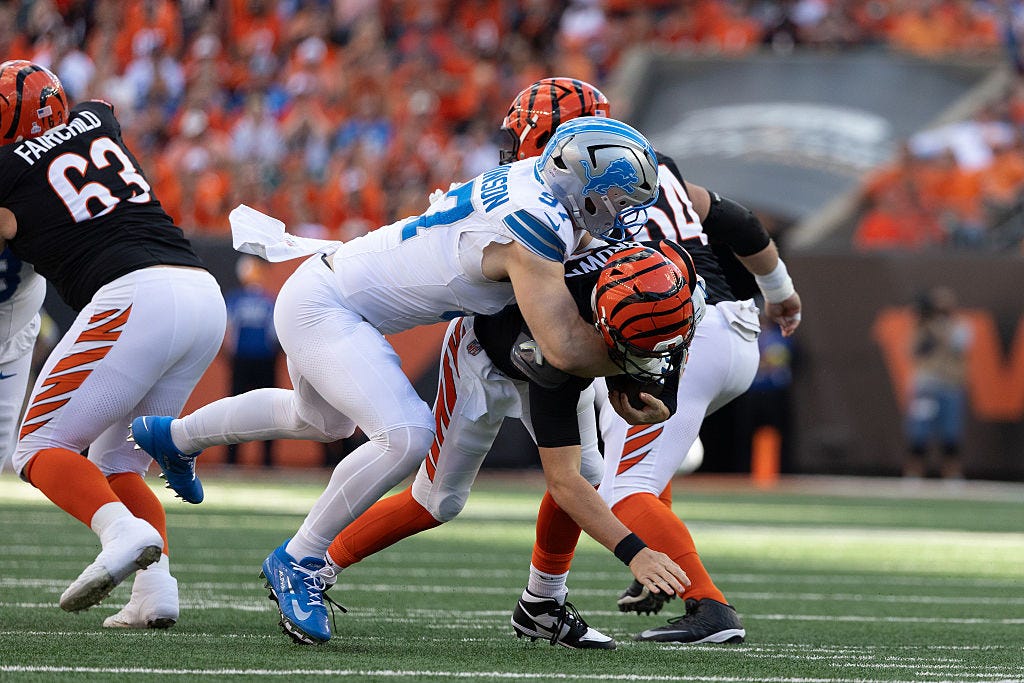 Through five games, Hutchinson ranks top five in sacks, quarterback hits, total pressures and forced fumbles. That’s with having two sacks, a forced fumble and a safety wiped out by penalties.