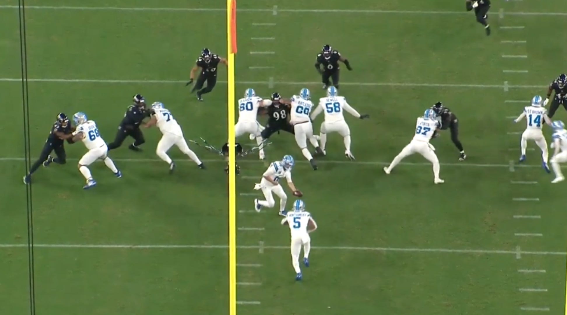 Taking possession deep in their own territory in a tie game after the defense forced a punt that the Ravens downed at the 4-yard line, Montgomery afforded Detroit’s offense some breathing room with an 11-yard carry to open the possession.